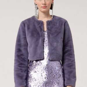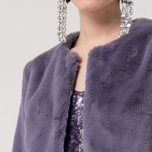 Kratek plašč iz imitacije krzna je eleganten in razkošen dodatek k vašim elegantnim hlačam ali obleki. S svojo mehko teksturo in sofisticiranim videzom bo poskrbel za prefinjen zaključek vsakega outfita. Popoln za hladnejše dni, ko želite združiti toplino in modno eleganco.