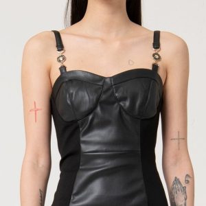 GIL SANTUCCI Lahko padajoče črno krilo z nežno prosojnim tilom in poudarjenim pasom z vidno kovinsko zadrgo. Elegantna izbira za modne, večplastne stajlinge.