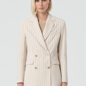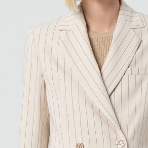 Dodajte svojemu videzu pridih elegance s to klasično blazer jakno navadnega kroja, izdelano iz črtastega blaga za sofisticiran in brezčasen videz. Dvojno zapenjanje poudari strukturiran kroj, medtem ko klasična hrbtna zasnova zagotavlja popolno prileganje. Gumbi z logotipom znamke Fracomina dodajo ekskluziven pridih. Dolgi rokavi pa poskrbijo za vsestranskost in brezhiben stil v vseh sezonah.