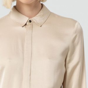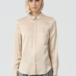Elegantna satenasta majica običajnega kroja za brezčasen in prefinjen videz. Opremljena je s klasičnim ovratnikom, skritim zapenjanjem na gumbe za minimalističen učinek in dolgimi rokavi za vsestransko eleganco. Popolna izbira za poslovne ali večerne stajlinge!