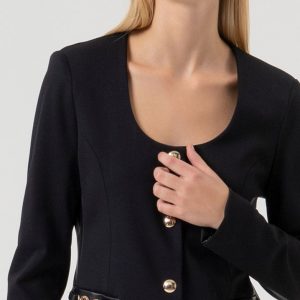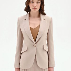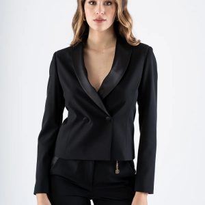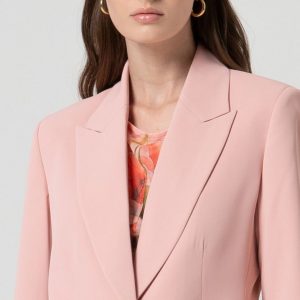 FRACOMINA Suknjič klasičnega, a sodobnega kroja, ki združuje eleganco in preprostost. Rever ovratnik poudari prefinjen značaj modela, enogumbno zapenjanje pa poskrbi za čist in urejen videz