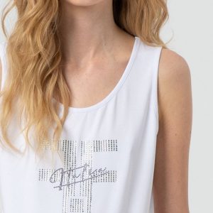 FRACOMINA Bela majica s kratkimi rokavi, okrašena z drobnimi bleščečimi detajli, ki dodajo eleganten in ženstven poudarek.