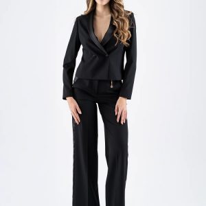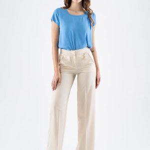 Te prefinjene široke hlače so popolna izbira za elegantne in svečane priložnosti. Visok pas poudari ženstveno silhueto, medtem ko lahkoten in zračen material omogoča maksimalno udobje skozi ves dan. Nežen lesk tkanine doda pridih sofisticiranosti, hlače pa so idealne za kombiniranje z bluzami, suknjiči ali elegantnimi topi. Nepogrešljiv kos v vsaki garderobi za brezhibno eleganten videz!