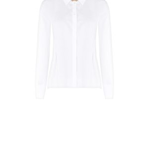 FRACOMINA Kratka bela majica s kratkimi rokavi in ovratnikom, oblikovana v čistih linijah za sodoben, eleganten videz.