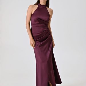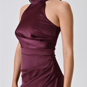 Obleka, ki bo zagotovo pritegnila poglede – idealna za posebne priložnosti. Ta dolga obleka brez rokavov združuje prefinjenost in eleganco. Zavezuje se ob vratu, kar ji daje ženstven videz, medtem ko dodatki z dragulji prinašajo pridih glamurja. Stranski zračnik omogoča udobje pri gibanju, zadrga na hrbtu pa omogoča enostavno obuvanje. Idealna izbira za elegantne večerje, gala dogodke ali posebne priložnosti.