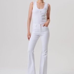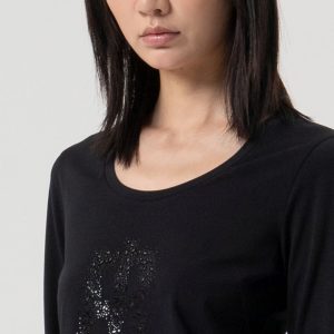 Popoln top za vsak dan – z bleščicami za poseben učinek. Top, ki je udoben in hkrati prefinjen kos in ga boste zlahka vključili v vsakodnevne modne kombinacije. Izdelan je iz mehke bombažne tkanine z dodatkom elastana, kar zagotavlja prijeten občutek na koži in optimalno prileganje. Na sprednji strani je okrašen z logotipom iz drobnih kamenčkov, ki dodajo pridih elegance sicer preprostemu, enobarvnemu modelu. Običajen kroj omogoča vsestransko kombiniranje – od kavbojk do kril ali elegantnih hlač.