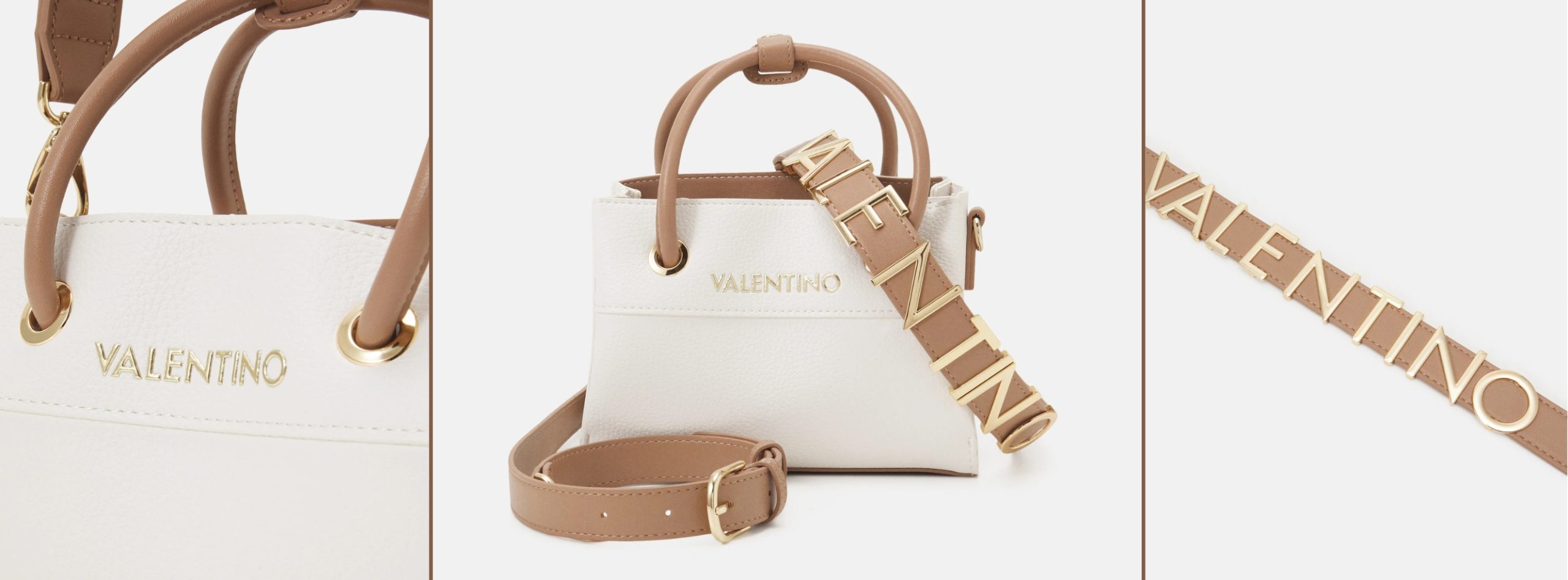 VALENTINO Torbica Alexia z izrazitim zlatim pasom in dvema načinoma nošenja za sodoben, eleganten videz.