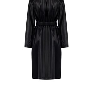RINASCIMENTO Plašč iz eko usnja izžareva sodobno eleganco in samozavest. Pas poudari postavo, medtem ko sijoča površina doda prestižen videz. Idealna izbira za moderen jesenski ali zimski videz — odlično se poda tako k kavbojkam kot elegantni obleki.