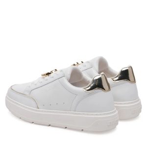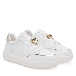 LOVE MOSCHINO Superge Bold40 združujejo športno udobje in razkošen slog. Izdelane so iz kakovostnega umetnega usnja z rahlim sijajem, ki doda svežino in eleganco vsakemu videzu. Zlati kovinski srček z logotipom Love Moschino na vezalkah pritegne pozornost in ustvari prepoznaven, igriv videz.