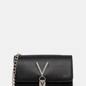 VALENTINO Denarnica za telefon. Črna prešita crossbody z zlatimi detajli in trojnim zapiranjem – elegantna, varna in popolna za vsakodnevno uporabo.