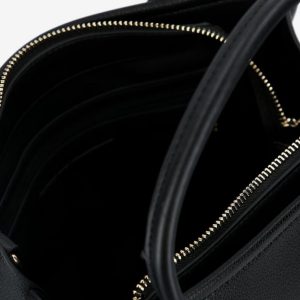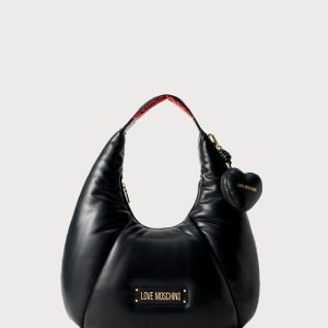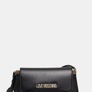 LOVE MOSCHINO Črna torbica Love Moschino iz eko usnja z ročaji, odstranljivim trakom in zapiranjem na gumb – elegantna, praktična in popolna za vsak dan.
