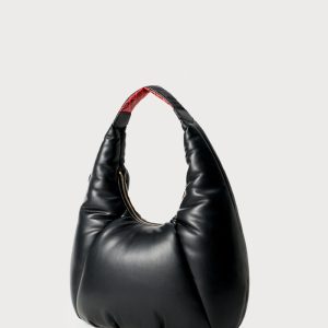 FRACOMINA Torbica Bowler. Črna usnjena z zlatimi kovinskimi detajli za eleganten, sodoben videz.