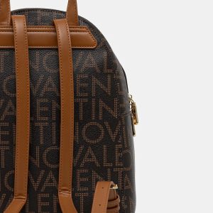 VALENTINO Nahrbtnik Regina Logo. Stilski temno rjav zlatimi detajli za sodoben, prepoznaven videz.