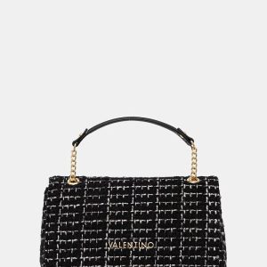 VALENTINO Torbica Tweed z mrežastim vzorcem, zlatim verižnim pasom in usnjenim detajlom za udobje.