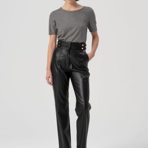 FRACOMINA Elegantne visokopasne usnjene hlače s kovinskimi gumbi ob pasu in rahlim sprednjim gubanjem. Ravni hlačnici ustvarita sodobno, prečiščeno silhueto. Perfectne za modne, izrazite stajlinge.