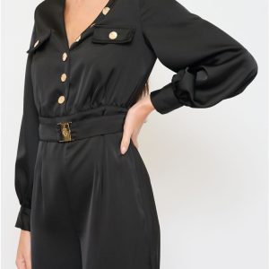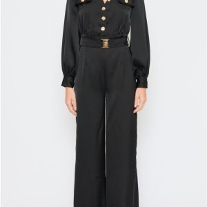 Kombinezon s pasom in srajčnim ovratnikom ponuja eleganten in trendovski videz. Zaponke na rokavih omogočajo prilagodljivost, saj jih lahko skrajšate po želji. Popoln za vsakodnevne priložnosti, kjer želite združiti udobje, funkcionalnost in modni pridih.