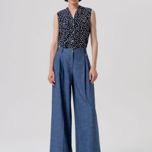Elegantne, udobne in ženstvene — hlače, ki bodo hitro postale tvoj najljubši kos sezone. Popestri svoj vsakdanji videz s temi edinstvenimi palazzo hlačami iz lahkotnega poplina. Visok pas s čipkastimi detajli doda romantičen pridih, medtem ko širok kroj in francoski žepi zagotavljajo udobje in eleganco. Idealna izbira za sproščene poletne dni ali urbane sprehode s pridihom ženstvenosti.