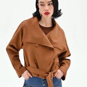 FRACOMINA Plašč s pasom Brown klasičnem kroju trenčka prinaša brezčasen slog in pridih samozavesti. Izdelan je iz kakovostnega umetnega usnja z mat sijajem, ki nudi eleganten videz in prijeten občutek pri nošenju.