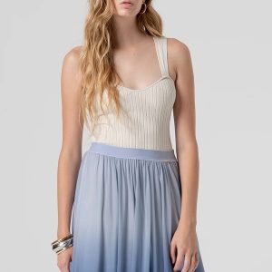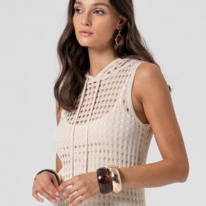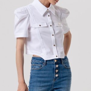 Prefinjena eleganca in unikatna estetika se združita v tej brezrokavni majici Rinascimento, ki izstopa z vrtnico kot osrednjim modnim detajlom. Idealna za kombiniranje s krili, hlačami z visokim pasom ali pod suknjičem – za videz, ki pritegne poglede.