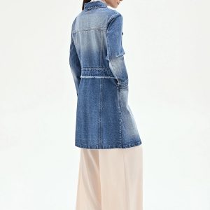 RINASCIMENTO Dolga jeans jakna v oblečnem kroju z gumbi in žepi, ki združuje sproščen denim videz in elegantno, podaljšano silhueto.