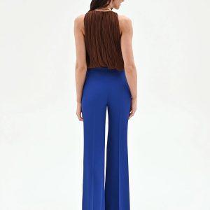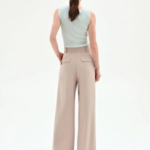 Stransko zapenjanje z zadrgo zagotavlja brezhibno prileganje, zaradi česar so te hlače izjemno udobne in primerne za kombiniranje s sofisticiranimi zgornjimi deli in dodatki.