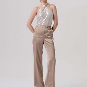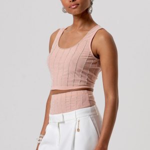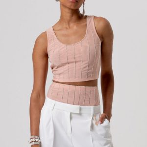 Eleganten top brez rokavov z ožjim krojem, ki poudari postavo. Svetleče črte dodajo modni pridih, medtem ko spuščen V-izrez daje ženstvenost in lahkotnost. Popolna izbira za večerne izhode ali kot del vsakodnevnih stajlingov z elegantnim pridihom.