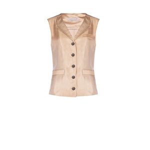 RINASCIMENTO Prefinjen šampanjski brezrokavnik z reverji in dekorativnimi gumbi – eleganten, moden in popoln za plastenje.