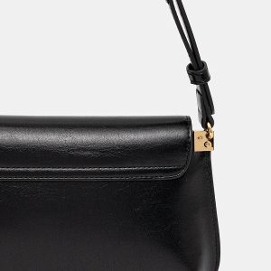 VALENTINO Winnie črna usnjena torba z zlatimi detajli in snemljivim pasom za eleganten, sodoben videz.