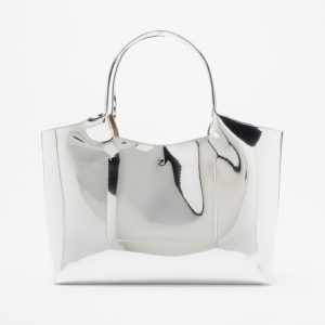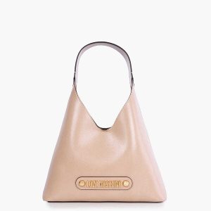 Shopper torbica Love Moschino združuje funkcionalnost in eleganco. Krasi jo ikonična dvojna kovinska zanka v obliki srca in mehki cevasti ročaji za udobno nošenje na rami. Na sprednji strani torbice izstopa kovinski logotip, ki doda prepoznaven pridih znamke.